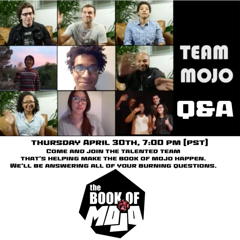 We'd like to apologize for the glitch in our scheduled Hangout this past Sunday. We had service issues that prevented us from broadcasting. That said, we'd like to give it another shot and this time we're going BIG! You guys have heard plenty from me, and I thought it would be fun to open it to the whole team! This Thursday, April 30th at 7:00 pm (PST) join me and a few of the talented team members for a fun Q&A session! Mike Yates (story), Maria Yi (vis dev), Morgan Johnson (music), Aaron McGriff (animator), and MontaQue Ruffin (animator) will be among those there ready and waiting to answer all your burning questions. Definitely come and check it out, it's going to be great!